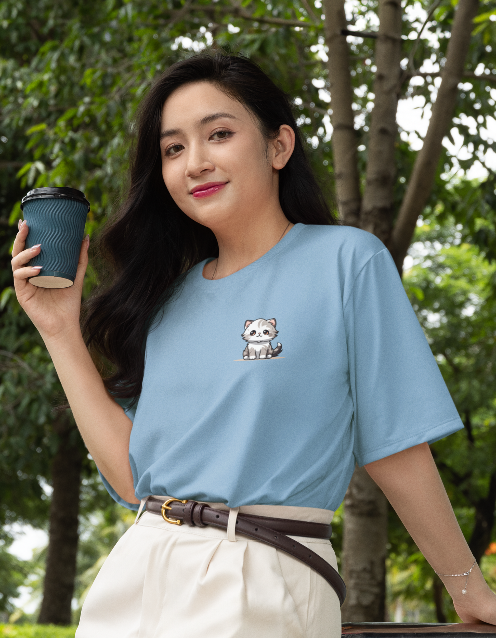 Who says comfy can’t be adorable? This oversized tee brings you the best of both worlds - laid back vibes with a dash of playful charm. Featuring a cheeky little kitty graphic that instantly brightens your mood, it’s the kind of tee you’ll reach for when you want to look effortlessly cool and irresistibly cute