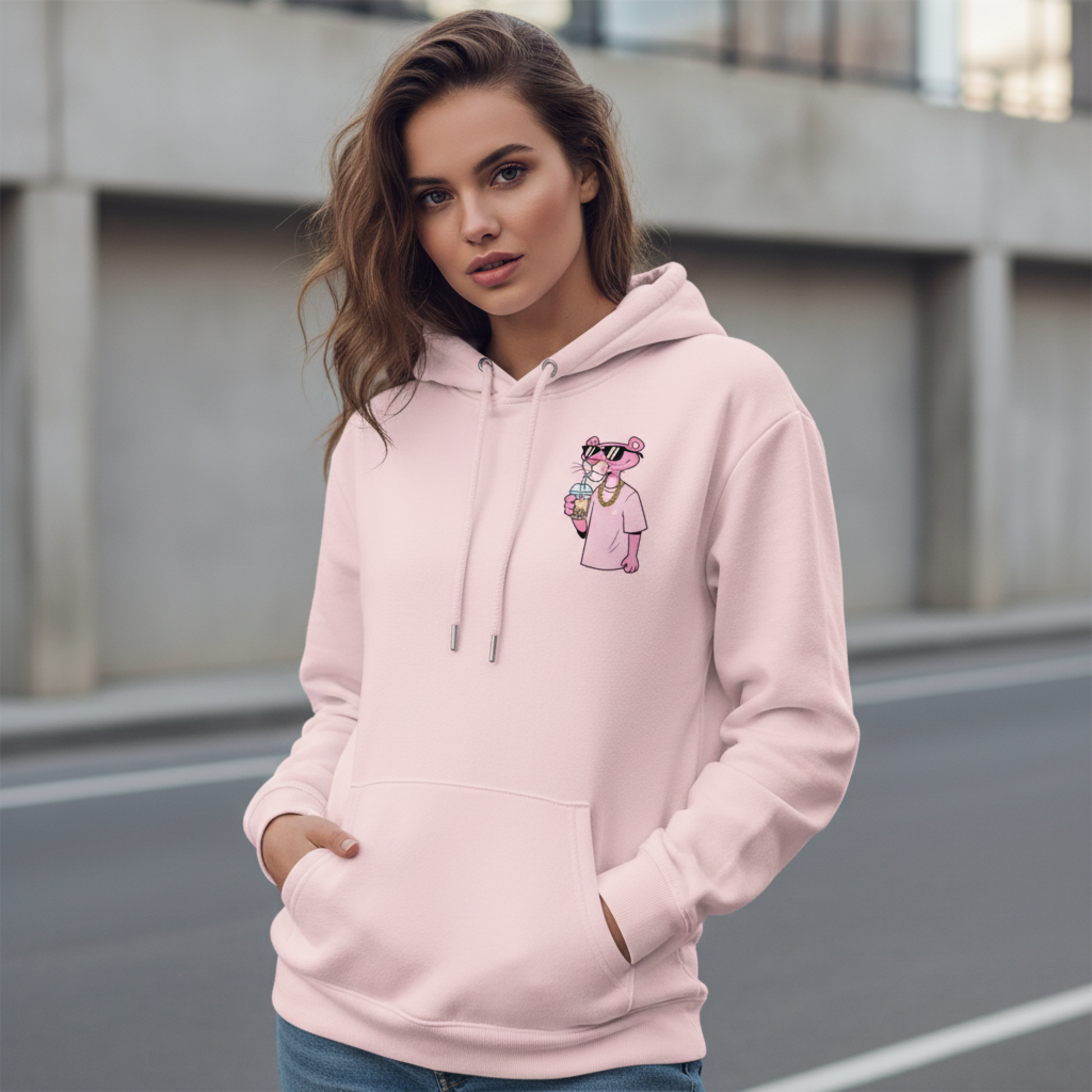 Sweet, sassy, and chill - the Pink Panther brings out your inner pink mood. This hoodie is your perfect partner for coffee runs, cozy nights, or spontaneous street strolls